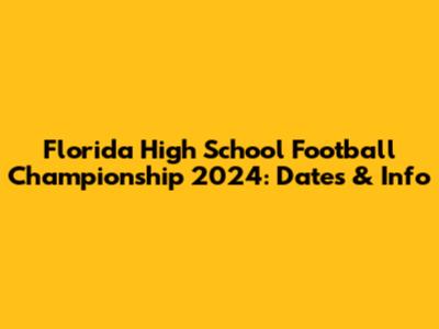 Florida High School Football Championship 2024: Dates & Info